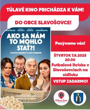 Obec Slavošovce Vás pozýva na Túlavé kino, ktoré sa bude konať dňa 27.07.2025 na futbalovom ihrisku na sídlisku. Bude sa premietať film: "AKO SA NÁM TO MOHLO STAŤ?!"